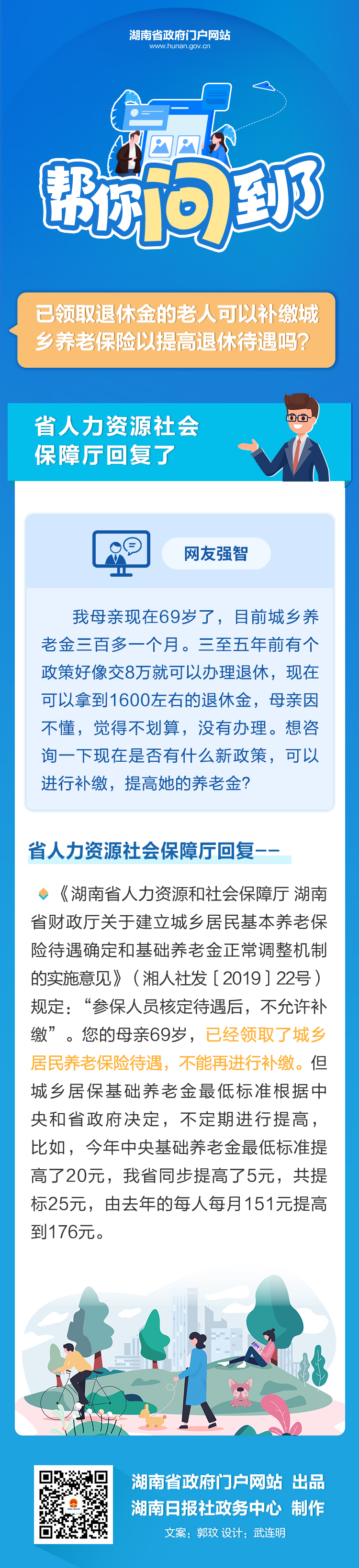 已領(lǐng)取退休金的老人可以補繳城鄉養老保險以提高退休待遇嗎?幫你問(wèn)到了!