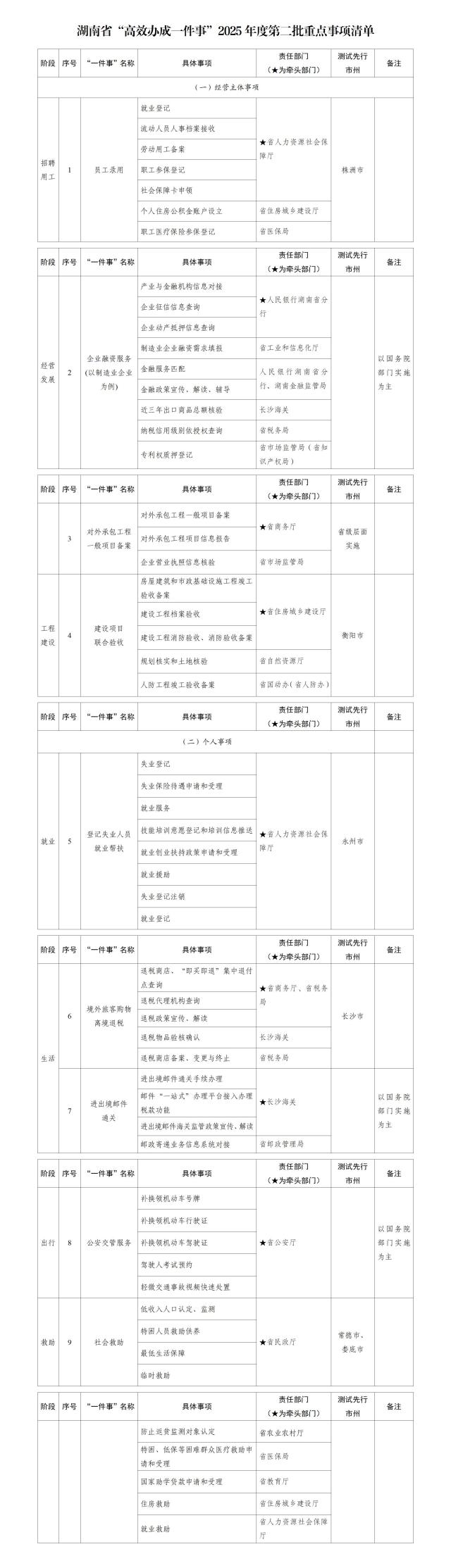 湖南省人民政府辦公廳關(guān)于印發(fā)《湖南省“高效辦成一件事”2025年度第二批重點(diǎn)事項清單》的通知
