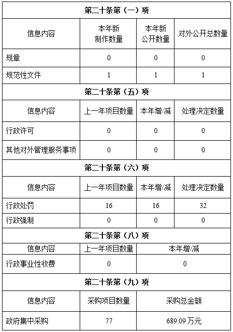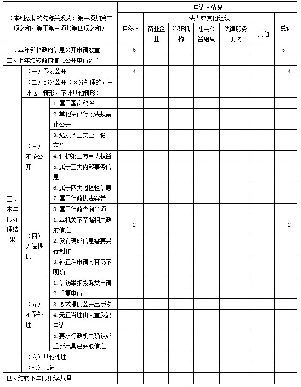 根據《中華人民共和國政府信息公開(kāi)條例》(以下簡(jiǎn)稱(chēng)《條例》)規定,編制本年度報告。報告內容由總體情況,主動(dòng)公開(kāi)政府信息情況,收到和處理政府信息公開(kāi)申請情況,政府信息公開(kāi)行政復議、行政訴訟情況,存在的主要問(wèn)題及改進(jìn)情況,其他需要報告的事項等六部分組成。本報告中所列數據的統計期限自2019年1月1日至2019年12月31日止。如對本報告有疑問(wèn),請與湖南省統計局辦公室聯(lián)系(地址:湖南省長(cháng)沙市五一大道351號;郵政編碼:410011;咨詢(xún)電話(huà):0731-82212567)。