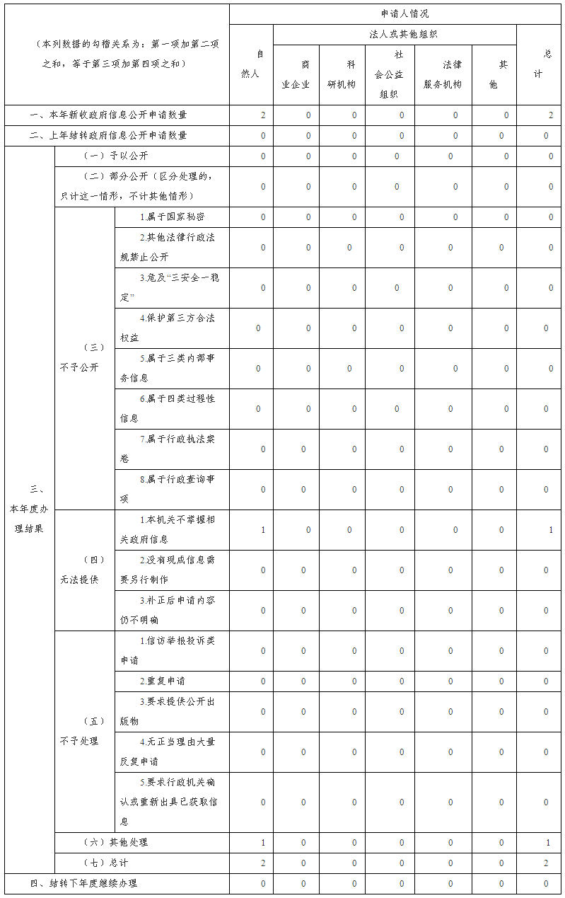 ?。ǘ┱J真辦好依申請公開(kāi)。不斷規范依申請公開(kāi)工作,利用網(wǎng)絡(luò )郵箱、郵寄信件等方式,及時(shí)回應群眾公開(kāi)申請。根據已修訂的《中華人民共和國政府信息公開(kāi)條例》,對依申請公開(kāi)事項類(lèi)型及處理方式進(jìn)行改進(jìn),進(jìn)一步完善制訂依申請辦理流程圖,規范做好申請登記、審核、辦理、復核、答復、歸檔等各項工作。全年共收到政府信息公開(kāi)申請2件,均按規定進(jìn)行了答復。