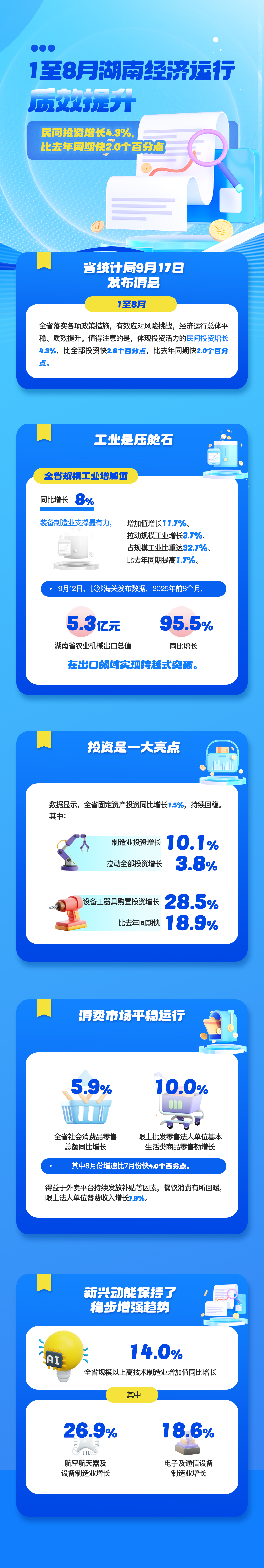 1至8月湖南經(jīng)濟運行質(zhì)效提升民間投資增長(cháng)4.3%,比去年同期快2.0個(gè)百分點(diǎn)