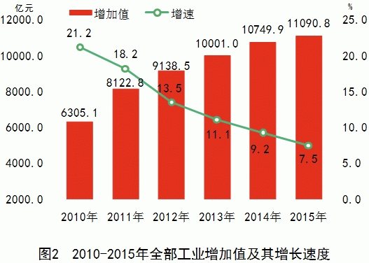 表1 2015年規模以上工業(yè)主要產(chǎn)品產(chǎn)量及其增長(cháng)速度
