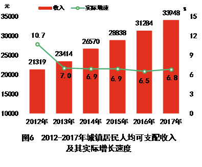 全省全體居民人均可支配收入23103元,比上年增長(cháng)9.4%,扣除價(jià)格因素實(shí)際增長(cháng)7.9%;人均可支配收入中位數19628元,增長(cháng)8.5%。城鎮居民人均可支配收入33948元,增長(cháng)8.5%,扣除價(jià)格因素實(shí)際增長(cháng)6.8%;城鎮居民人均可支配收入中位數31600元,增長(cháng)8.7%。農村居民人均可支配收入[14]12936元,增長(cháng)8.4%,扣除價(jià)格因素實(shí)際增長(cháng)7.2%;農村居民人均可支配收入中位數11877元,增長(cháng)7.6%。城鄉居民收入比為2.62:1,與上年持平。分區域看,長(cháng)株潭地區居民人均可支配收入36162元,增長(cháng)8.8%;湘南地區居民人均可支配收入21457元,增長(cháng)8.9%;大湘西地區居民人均可支配收入15674元,增長(cháng)10.4%;洞庭湖地區居民人均可支配收入21005元,增長(cháng)9.3%。貧困地區[15]農村居民人均可支配收入9268元,增長(cháng)10.7%。外出農民工人均月收入3844元,增長(cháng)6.9%。