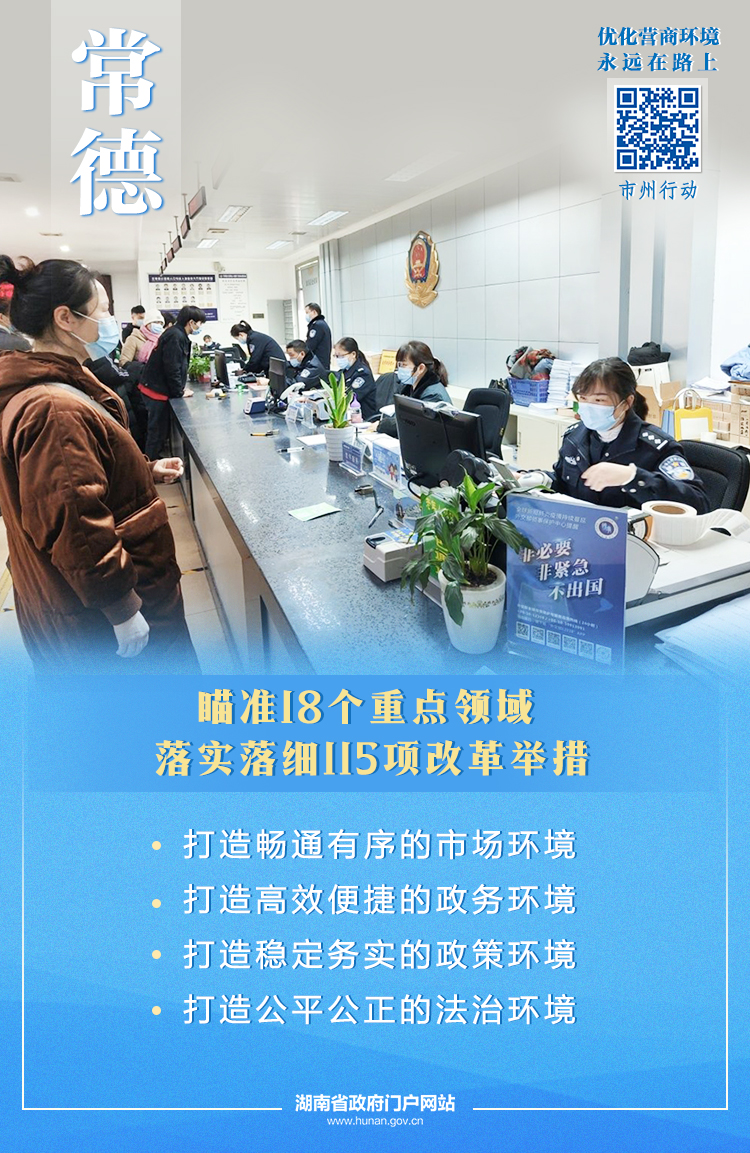 5月12日,常德發(fā)布《常德市優(yōu)化營(yíng)商環(huán)境2022版》,聚焦市場(chǎng)主體和人民群眾“全生命周期”,在18個(gè)重點(diǎn)領(lǐng)域持續實(shí)施優(yōu)化營(yíng)商環(huán)境系統集成改革,推動(dòng)115項改革舉措落實(shí)落細,著(zhù)力打造市場(chǎng)化、法治化、國際化營(yíng)商環(huán)境。